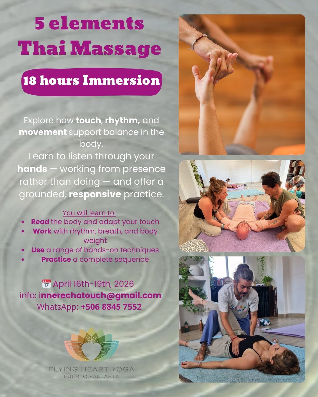 Thai Massage Belly Masterclass for Bodyworkers April 15 info+register Thai Massage Course with Inner Echo Touch April 16-19 info+register